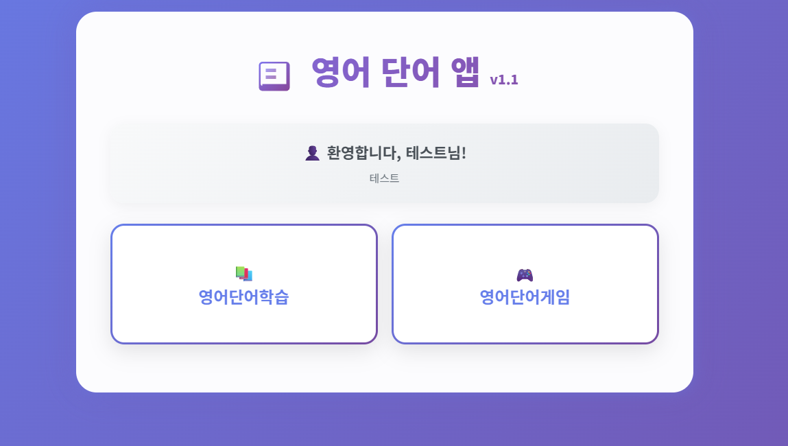 • 🔊 TTS 음성: 영어 단어 발음 재생